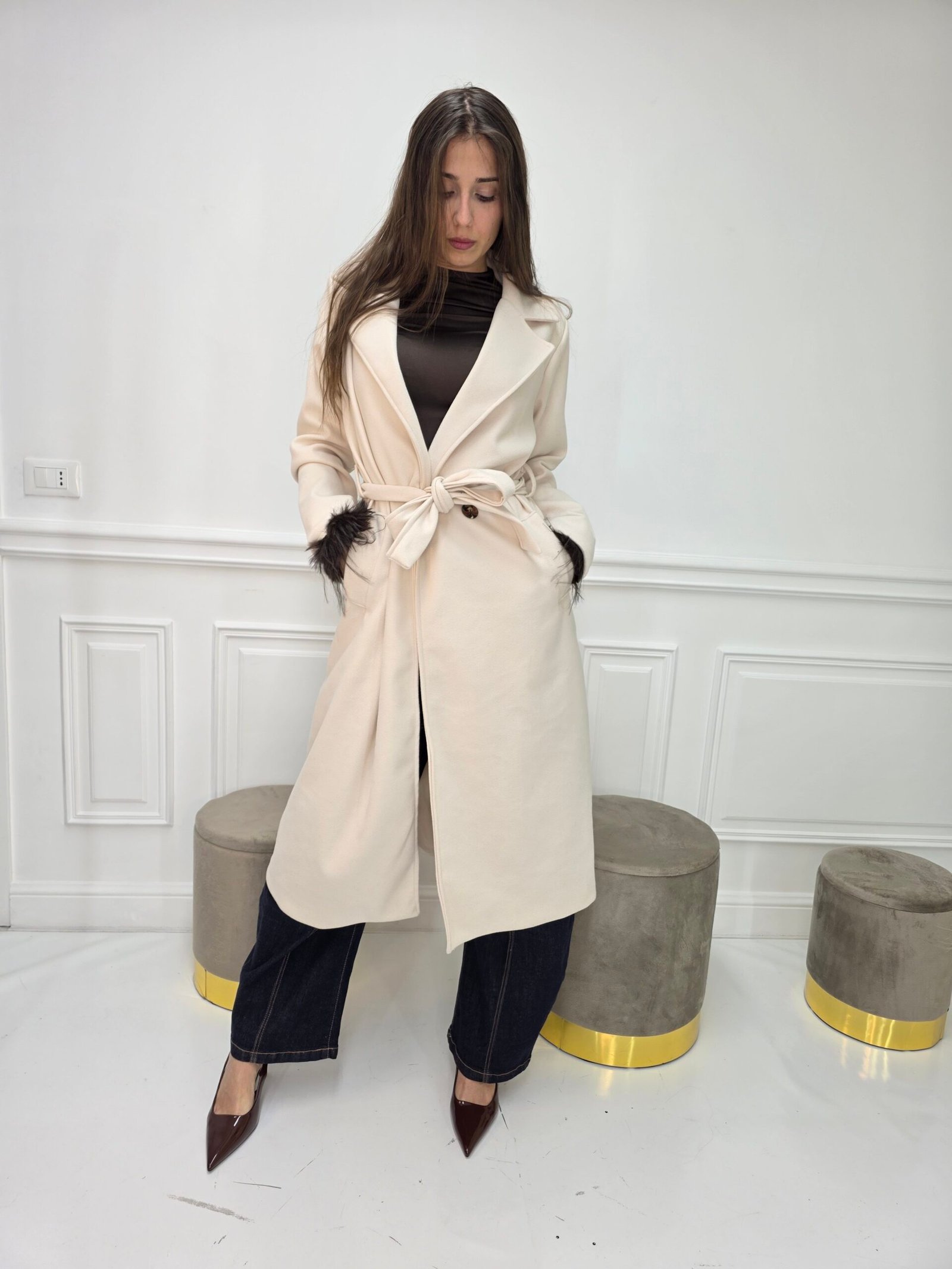cappotto lungo basic con cintura in vita,disponibile in vari colori e in taglia unica